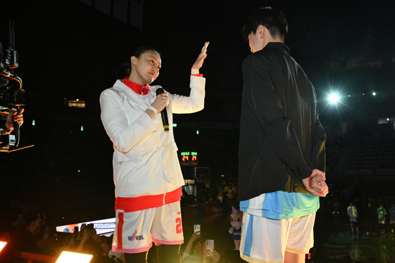 압권은 3쿼터였다. 하상윤 용인 삼성생명 감독과 코트를 밟은 최윤아 인천 신한은행 감독이 진안과의 '약속된 신경전' 끝에 발차기를 날린 것. 최 감독은 국가대표 막내 시절이던 2004년 대만 존스컵에서 비매너 플레이를 일삼던 대만 선수와의 충돌에서 발차기로 맞서며 강렬한 인상을 남긴 바 있다. 그때를 떠올리게 하는 장면을 유쾌한 퍼포먼스로 재현, 뜨거운 환호를 끌어냈다.