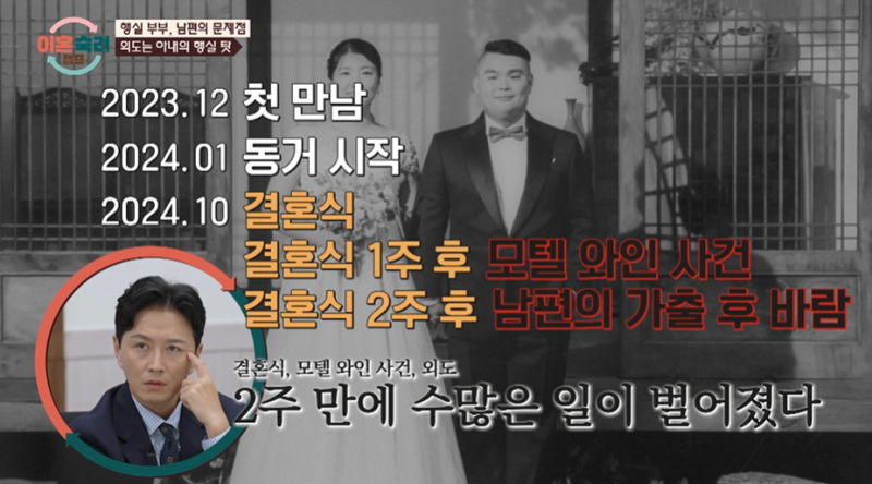 남편은 자신의 외도에 대해 “잘못됐다. 그건 인정한다”면서도 “근데 내가 숨이 막혀서 집을 나간거다. 아내가 비번을 안 바꿨으면 나가지 않았을 것이다. 본인이 나를 그렇게 만들었다”고 주장했다.