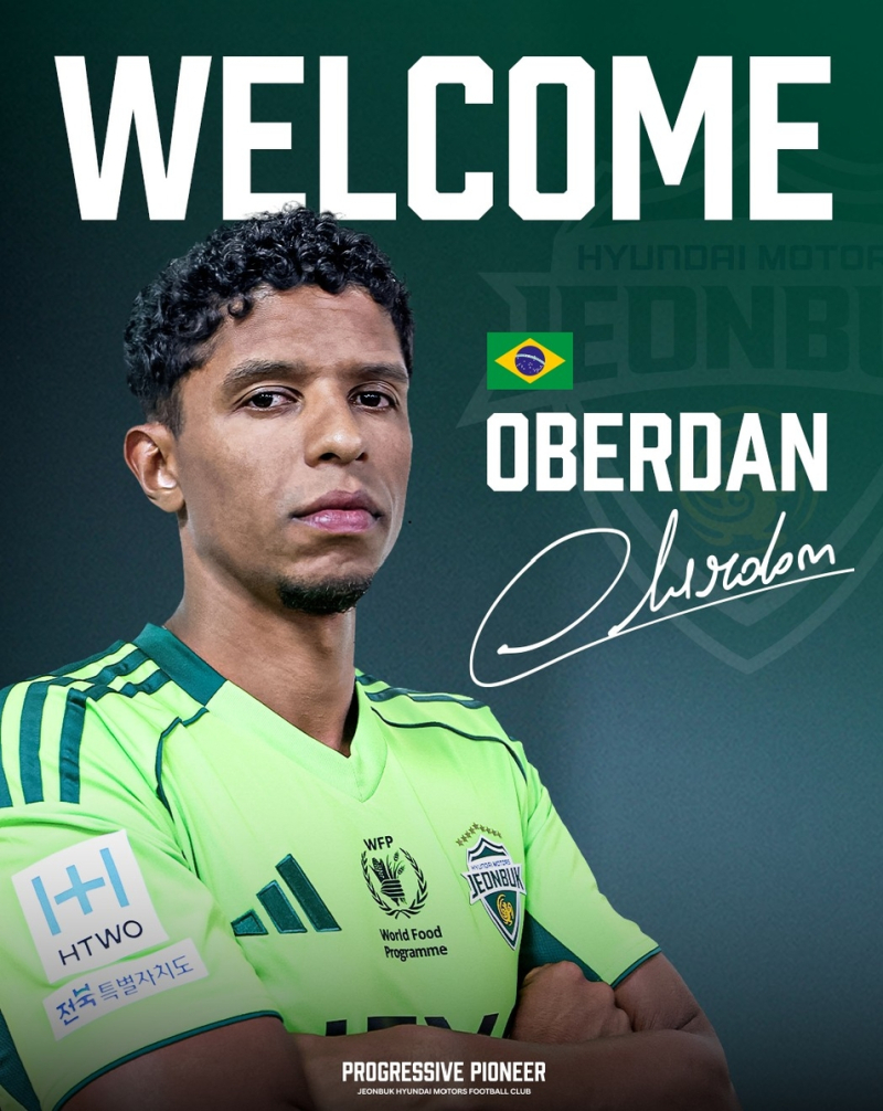 전북 구단은 10일 "K리그 최고 미드필더로 손꼽히는 오베르단을 영입하면서 중원을 강화했다"라며 "이번 영입은 2026시즌 K리그1 2연패와 아시아 정상 탈환을 노리는 구단에 강력한 중원 동력을 더해줄 것으로 기대된다"고 밝혔다.