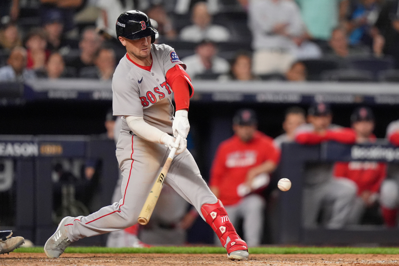 Boston Red Sox Alex Bregman connects for an RBI double against the New York Yankees during the ninth inning of Game 1 of an American League wild-card baseball playoff series, Tuesday, Sept. 30, 2025, in New York. (AP Photo/Frank Franklin II)/2025-10-01 10:07:39/ <저작권자 ⓒ 1980~2025 ㈜연합뉴스. 무단 전재 재배포 금지, AI 학습 및 활용 금지>