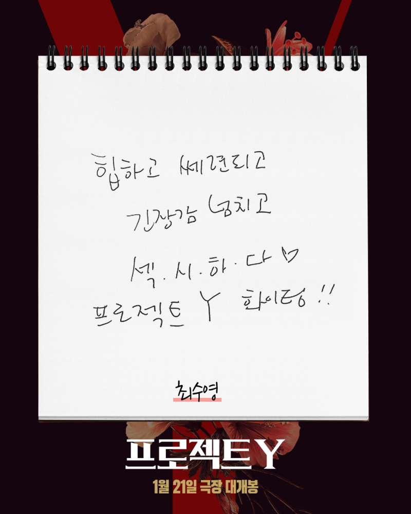 또한 “2026년을 여는 한국 영화 ‘프로젝트 Y’ 많관부!”(배우 장윤주), “‘프로젝트 Y’ 사랑! 흥흥흥흥해라~!”(가수 그레이(GRAY)), “‘프로젝트 Y’ 배우 스태프분들 너무 고생하신 흔적이 느껴졌습니다!”(‘굿뉴스’ 변성현 감독), “시간 가는 줄 모르고 봤어요! 흥미진진 그 자체!!! ‘프로젝트 Y’ 화이팅!”(배우 이홍내), “2026년 이미 최고의 영화! 눈, 귀 모두 시원~하다!”(가수 안신애), “음악부터 연출, 연기까지 3박자가 너무… 너무입니다. 또 보러 올래요. 믿고 보는 이환 감독님 작품”(배우 이수민), “2026년의 시작은 ‘프로젝트 Y’로! 충분히 가치가 있다!” (배우 미람) 등 ‘프로젝트 Y’를 향한 강력 추천을 보냈다.