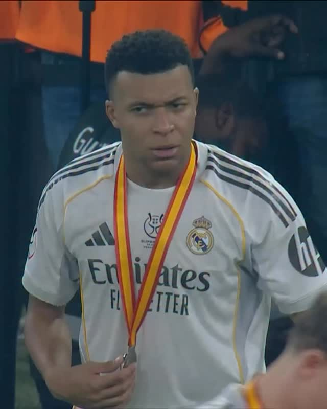 12일 바르셀로나와의 2025~26 슈퍼컵 결승전서 패배 뒤 준우승 메달을 수령한 음바페. 그는 이후 바르셀로나 선수단을 향한 우승팀 예우를 거부하며 동료들과 함께 현장을 떠난 거로 알려졌다. 사진=ESPN
