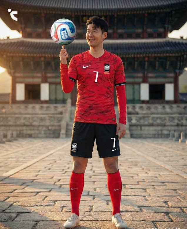한국 축구대표팀 유니폼 새 디자인을 손흥민과 합성한 AI 사진물. 사진=푸티헤드라인스