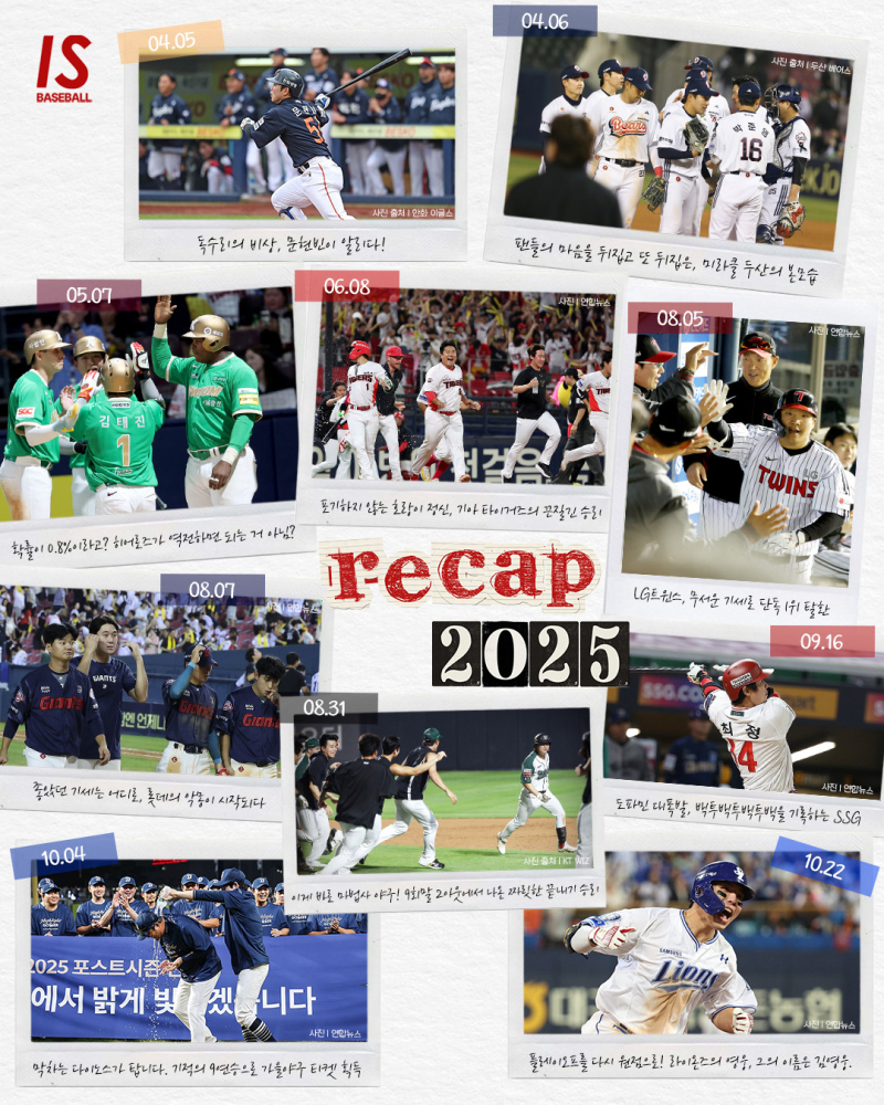 한국 프로 스포츠 사상 최초의 단일 시즌 1200만명 관중 돌파. 그리고 누적 관중 '2억명 시대'를 연 2025 국내 프로야구 KBO리그는 남녀노소 불문하고 많은 팬들의 사랑을 받으며 지난해 마무리됐다. 팬들을 울고 웃게 만든 지난해 프로야구의 흐름을 바꾼 '주요 순간'을 돌아봤다.