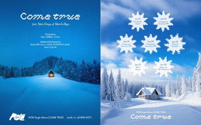 파우는 오는 28일 컴백을 확정하고 타이틀 포스터와 플랜 포스터를 동시에 공개하며 본격적인 컴백 카운트다운에 돌입했다. 15일 공식 SNS를 통해 공개된 타이틀 포스터에는 싱글 앨범 ‘컴 트루’ 발매 소식과 함께 동명의 타이틀곡 ‘컴 트루’가 첫 공개돼 팬들의 기대감을 단숨에 끌어올렸다.