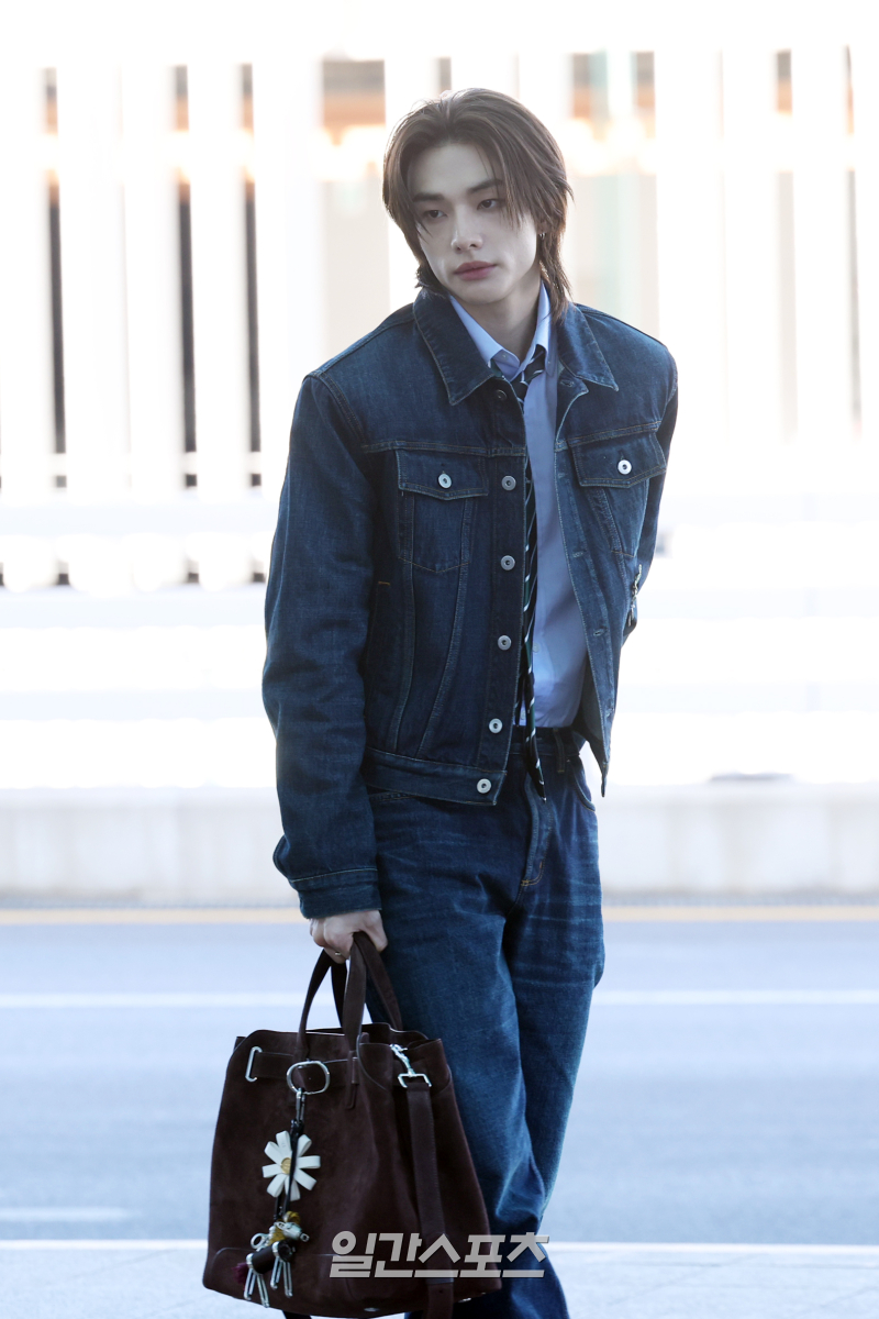 스트레이 키즈 현진, ‘청청룩도 완벽 그자체’….공항을 런웨이로 만든 청청룩