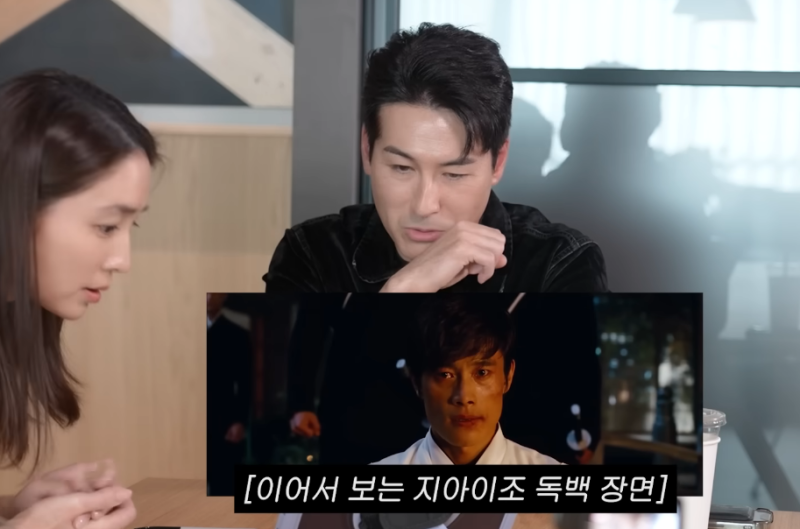 션 리차드는 이병헌이 영어 억양을 디테일하게 전달하기 위해 연습을 많이 했다고 당시를 떠올렸다. 그러나 이병헌의 액션 장면이 등장하자 션 리차드는 웃음을 터뜨렸고, 이민정은 “왜 웃냐, 이병헌이 볼 수도 있다”고 만류했다. 사진=유튜브 채널 ‘이민정 MJ’ 그러자 션 리차드는 “형을 잘 알아서 그런다. 고생 많이 하셨단 생각이 든다”고 수습했고, 이민정은 “이때는 영어보다 몸 만드는게 더 고생이었다”고 거들었다.