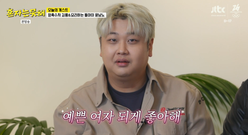 김풍 또한 이세희에게 “윤남노 같은 스타일 어떤가”라고 물었고, 윤남노는 “돼지상”이라며 자신의 매력을 어필했다. 사진=JTBC 이세희는 당황하면서 “너무 귀엽고 사랑스럽다”고 말을 더듬어 웃음을 안겼다. 그러자 추성훈은 “예쁜 여자 안 좋아하는 남자가 어디 있나”라고 어색한 분위기를 수습했다.