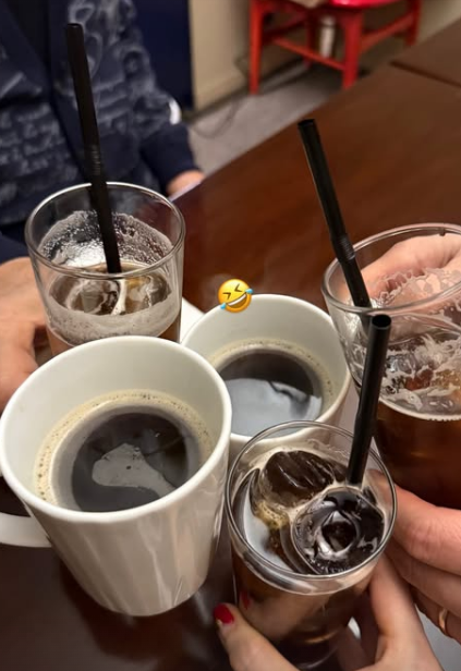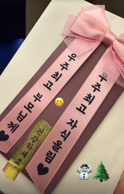 고현정은 털모자와 화이트 퍼 아우터를 착용한 채 카키색 백팩 선물을 가리키며 "나도 선물을 받음"이라는 글을 덧붙였다. 이어 가족들이 함께 커피잔을 맞대며 건배하는 모습도 공유했다.