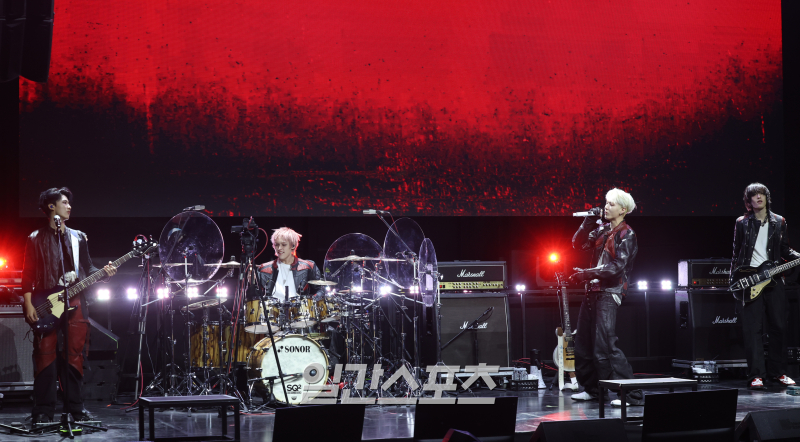 21일 서울 서대문구에서는 에이엠피의 첫 번째 미니앨범 ‘앰플리파이 마이 웨이’ 발매 기념 쇼케이스가 열렸다. FNC 신인밴드 에이엠피(AxMxP)가 21일 오후 서울 서대문구 예스24 원더로크홀에서 열린 첫 번째 미니 앨범 'Amplify My Way(앰플리파이 마이 웨이)' 발매 기념 쇼케이스에 참석해 인사말을 하고 있다. '앰플리파이 마이 웨이'는 각자의 속도로 꿈을 찾아가는 청춘들의 이야기를 담은 앨범이다. 서병수 기자 qudtn@edaily.co.kr /2026.01.21/