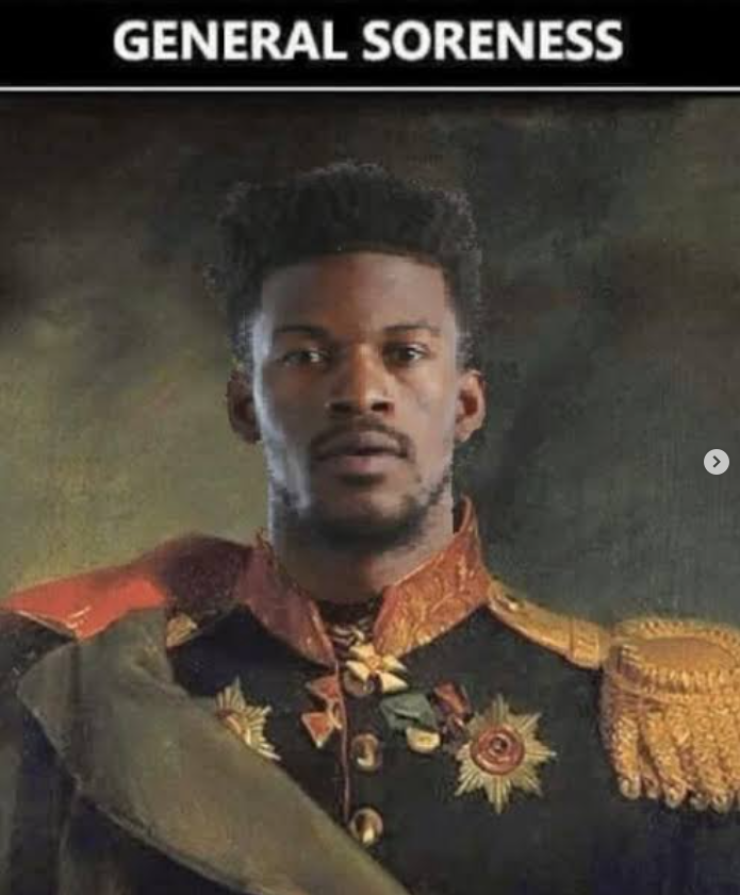 버틀러는 21일(한국시간) 개인 SNS(소셜미디어)에 빈티지 스타일의 군복을 입은 자신의 사진을 합성한 이미지를 공개했다. 사진 상단에는 ‘general soreness(일반적인 근육통)’이라는 문구가 적혀 있었다. 심각한 부상 소식 직후 올라온 게시물인 만큼, 배경을 잘 모르는 팬들 사이에서는 '대체 무슨 뜻이냐'는 반응이 쏟아졌다.