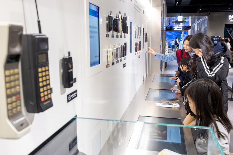 서울 종로구 광화문빌딩 웨스트의 체험형 전시 공간 ‘KT 온마루’를 찾은 관람객들. KT 제공 “아빠 어릴 땐 휴대전화가 없어서 삐삐 울리기만 기다렸었어.”