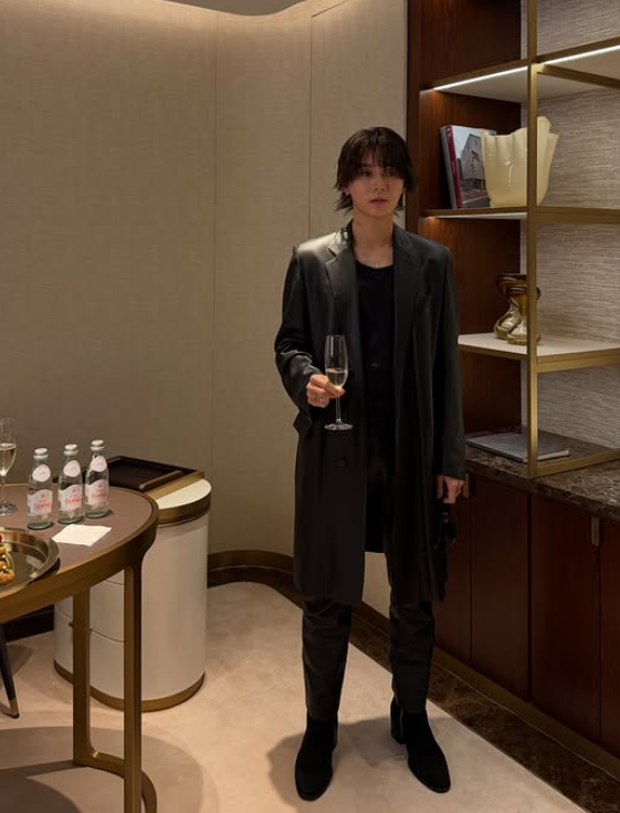 최근 포착된 사진 속 던은 고급스러운 인테리어가 돋보이는 프라이빗한 공간에서 남다른 패션 감각을 뽐내고 있다. 그는 무릎 위로 내려오는 기장감의 블랙 레더 코트에 슬림한 핏의 레더 팬츠를 매치, 패셔니스타다운 면모를 보였다.