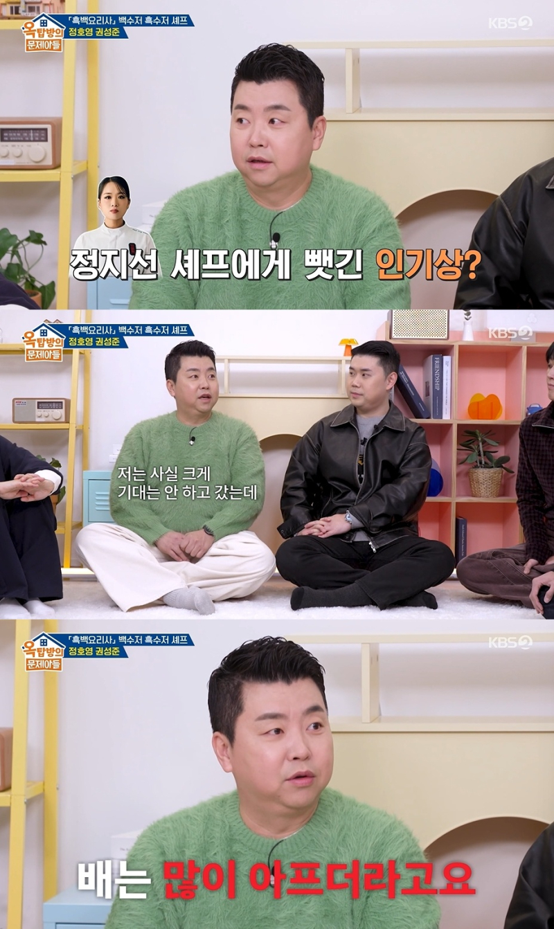 22일 방송된 KBS2 ‘옥탑방의 문제아들’(이하 ‘옥문아’)에는 ‘흑백요리사1’ 우승자 권성준 셰프와 ‘흑백요리사2’ 톱4 정호영 셰프가 출연해 유쾌한 입담을 나눴다.