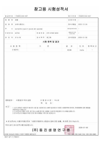 삼화식품에 따르면, 이번 3-mcpd 성분 조사는 분석업체인 한국식품과학연구원과 동진생명연구원에서 진행됐다. 하지만 두 업체에서는 해당 간장에 대한 3-mcpd 성분의 검출 결과가 다르게 나오면서 문제가 발생했다.