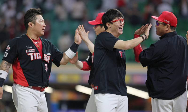 '현종이 형이 보낸 메시지를 읽고 눈물을 흘렸다'는 박찬호의 말에 양현종은 "거짓말이다. 걔는 눈물이 없는 애다"라며 웃었다. 이어 "신인 때부터 찬호를 봐왔다. 그래서 약간 (감정이 특별한) 그런 게 있다"고 말했다. 3일 오후 잠실야구장에서 열린 2025 프로야구 KIA와 두산 경기. KIA 선발 양현종이 3회 두산 김재환의 라인드라이브 타구를 잡아낸 유격수 박찬호를 격려하고있다. 잠실=정시종 기자 capa@edaily.co.kr /2025.06.03. 박찬호는 "'양현종 선배와 첫 대결을 할 때, 내가 눈물을 참을 수 있을까'라는 생각도 했다"고 털어놓은 적 있다. 양현종도 마찬가지로 "찬호와 타석에 들어서 (상대 선수로 만나면) 좀 뭉클할 거 같다. 항상 내 뒤에서 날 지켜주는 역할이었는데 앞으로는 (투타 승부 대결을 펼치면) 적응하기 힘들 거 같다"고 솔직한 심정을 내비쳤다.