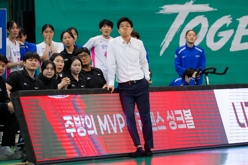 24일 부천실내체육관에서 열린 2025~26 여자프로농구(WKBL) 하나은행전을 승리로 이끈 하상윤 감독. WKBL 제공