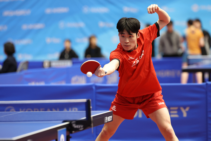 장우진. 사진=대한탁구협회 제공 제천체육관에서 열리고 있는 제79회 대한항공 전국남녀종합탁구선수권대회가 24일 개막 4일차 경기를 지나면서 개인전 각 종목에서 순위권의 윤곽을 드러냈다.
