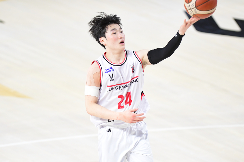 정관장 신인 문유현은 1쿼터 3분여 만에 교체 투입됐다. 직후 수비에선 LG 양준석의 레이업을 정확하게 블록하며 존재감을 알렸다.