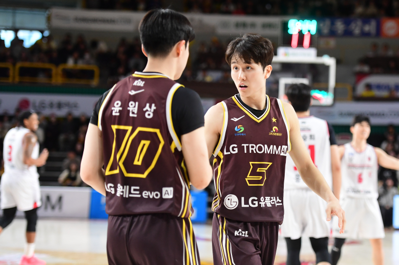 LG의 2연승을 이끈 건 가드 양준석이었다. 지난 2022년 프로농구 신인드래프트 전체 1순위 출신인 그는 이날 15점 5어시스트를 기록하며 ‘2026년 1순위’ 정관장 문유현(0점 9리바운드 2어시스트) 판정승했다. 양준석은 지난 2024~25시즌 LG의 창단 첫 챔피언결정전 우승에 기여한 바 있다.