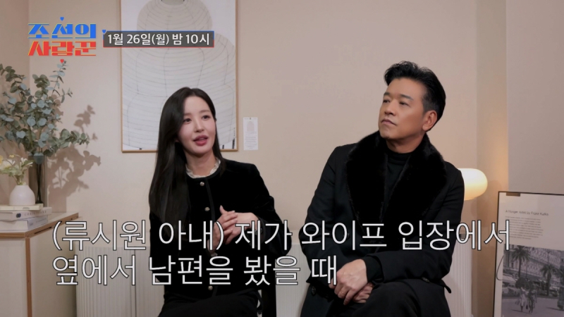 26일 방송하는 TV조선 예능 ‘조선의 사랑꾼’ 선공개 영상에서는 결혼 6년 만에 대중에게 공개된 류시원의 ‘19세 연하’ 아내가 “처음에는 많이 걱정했다”며 조심스럽게 윤정수의 결혼식에 참석한 뒤 대중에게 얼굴이 알려지게 된 솔직한 심정을 전한다. 아내의 망설임에 류시원은 “내가 (자리에서) 없어져 줄까?”라며 세심한 배려를 선보였다.