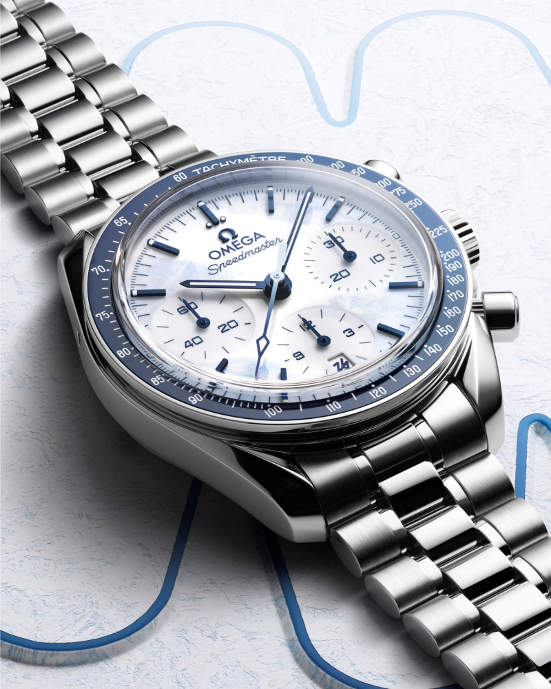 오메가는 스피드마스터 38mm 밀라노·코르티나 2026에 대해 "스테인리스 스틸 케이스에 화이트 에나멜 타키미터 스케일이 적용된 블루 세라믹 베젤 링이 특징이다. 화이트 래커 다이얼에는 연한 블루 프로스팅 효과가 더해졌으며, 밀라노·코르티나 2026 엠블럼에서 영감을 받은 핑거 트레이스 패턴이 적용되었다. 또한 서브 다이얼에는 잘 정돈된 스키 슬로프를 연상시키는 아쥬라주 마감이, 케이스백에는 밀라노·코르티나 2026 메달리온이 각인되어 이번 역사적인 순간을 영원히 기념한다"라고 부연했다.