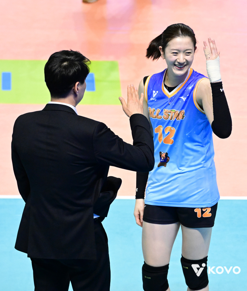 V리그 여자부 대표 미들 블로커 이다현은 지난 25일 열린 올스타전에서 신영석(한국전력)과 함께 세리머니 상 수상자(기자단 투표 29표 중 23표)가 됐다.