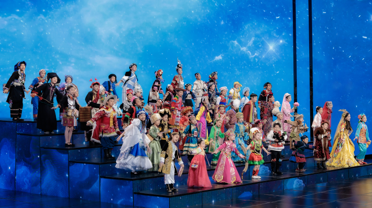 중국 중앙방송총국(CMG)의 2026년 설 특집 프로그램 ‘춘완’ 리허설에서 전통 설화를 모티브로 한 무대와 어린이 합창 공연이 진행되고 있다. (사진제공 : CMG)