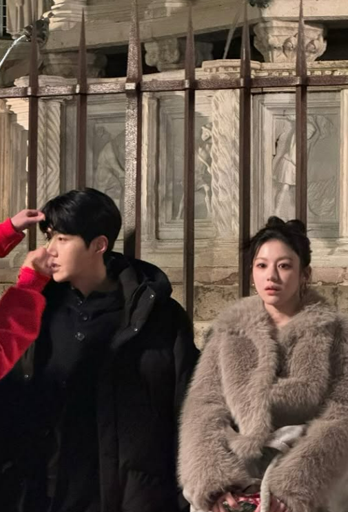 현지의 계단과 벤치에 앉아 휴식을 취하는 모습도 포착됐다. 두 사람은 두꺼운 외투를 걸친 채 서로에게 밀착해 앉아 환하게 웃거나, 같은 곳을 응시하며 현장 분위기를 즐겼다. 특히 노을 아래 벤치에서 코트를 같이 덮고 있는 모습은 작품 속 케미를 느끼게 했다.