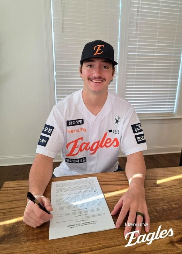 한화에서 뛰게 될 오웬 화이트. [사진 이글스TV 갈무리]한화와 입단 계약 당시의 오웬 화이트. [사진 한화 이글스]