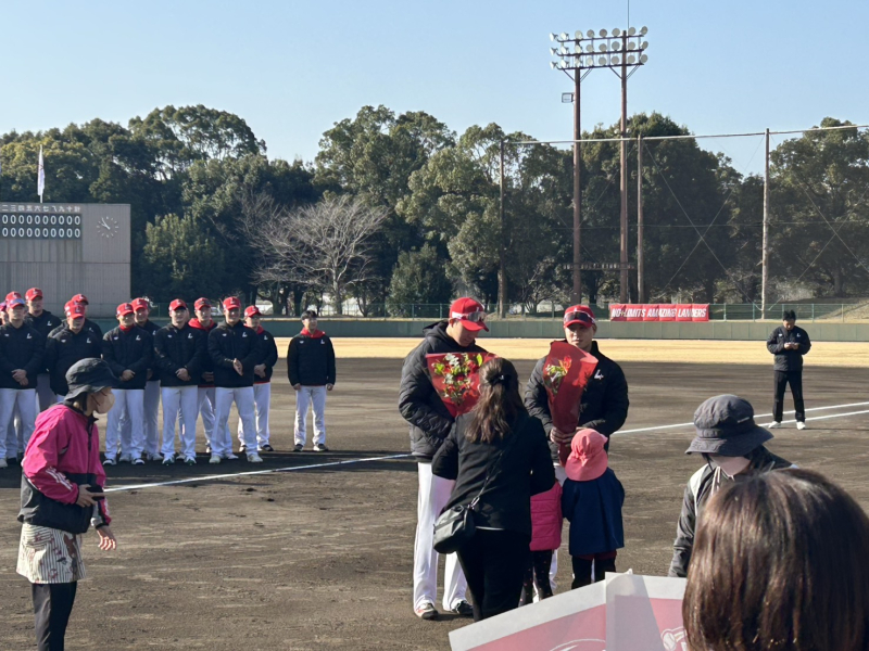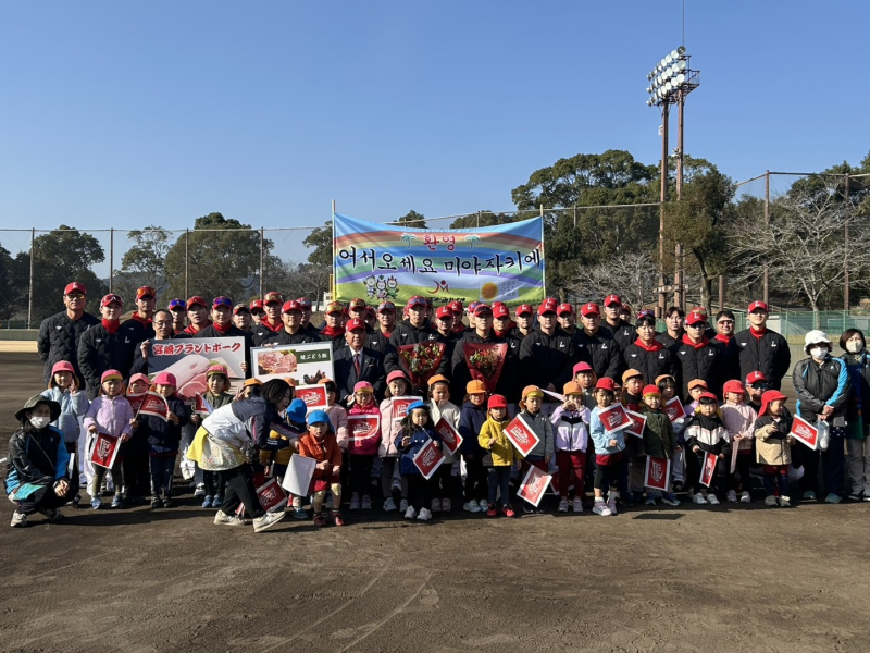 SSG 랜더스 퓨처스(2군) 선수단이 26일 일본 미야자키현 아야초에서 열린 환영 행사에 참석하며 본격적인 스프링캠프 시작을 알렸다. 핵심 유망주 육성 등을 이유로 올해 2군 캠프지로 미야자키를 선택한 SSG는, 본격적인 훈련에 앞서 니시키바루 야구장에서 아야초 측의 제안으로 마련된 환영 행사를 진행했다.