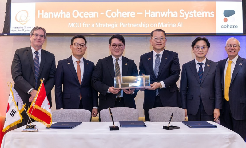 또 한화오션과 한화시스템은 캐나다의 유니콘 AI 기업인 코히어와 AI 기술 협력을 위한 3자 MOU를 체결했다.