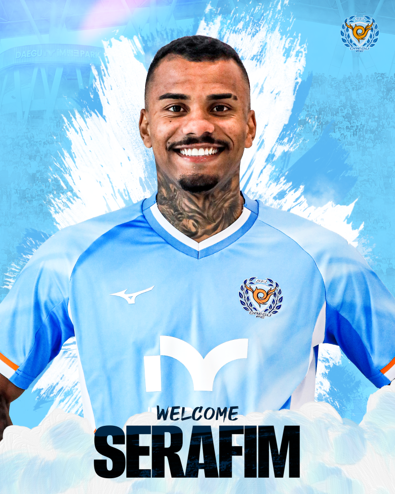 세라핌은 본인을 마지막까지 포기하지 않는 캐릭터라고 소개하며 “세징야, 에드가 같은 대단한 업적이 있는 선수들과 함께하는 만큼 그들에게 배우고 빨리 적응하겠다. 팀의 목표, 개인의 목표 모두 승격뿐이다. 빨리 대구팬 여러분들을 만나고 싶다”라며 각오를 밝혔다.