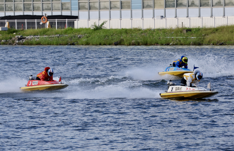 김효년이 탑승한 1호정(흰색)이 가장 빨리 결승선을 향해 달려가고 있다. 국민체육진흥공단 1974년생 베테랑 김효년(2기·A2)이 통산 500승을 달성했다.