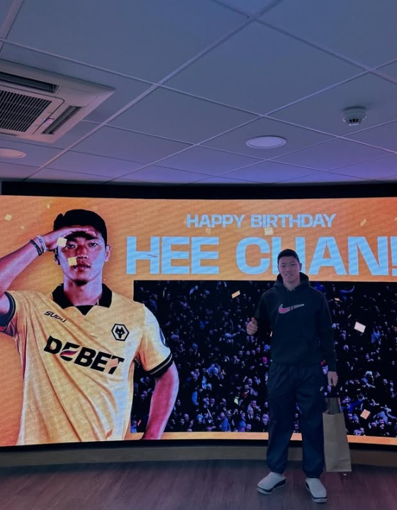 황희찬은 26일 자신의 SNS에 여러장의 사진을 올렸다. 사진을 올린 날은 황희찬의 30번째 생일이었다. 황희찬은 1996년 1월 26일 태어났다. 사진에는 영국 버밍엄의 한 호텔로 보이는 곳에서 황희찬을 비롯해 백승호(29·버밍엄시티), 전진우(27·옥스퍼드 유나이티드), 배준호(23·스토크시티)가 있었다. 생일을 맞은 황희찬은 '해피 버스데에(Happy Birthday)' 문구가 적힌 고깔 모자를 쓰고 앉아있다. 그 주위를 백승호, 배준호, 전진우가 둘러싸고 있었다. 황희찬은 '어제, 오늘 행복한 생일 만들어주셔서 감사합니다'고 적었다. 그 아래 백승호가 하트눈을 한 이모지를 올리기도 했다.