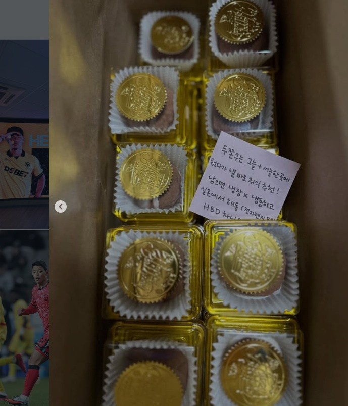황희찬은 선물도 공개했다. 가장 핫한 아이템인 '두쫀쿠(두바이 쫀득 쿠키)'의 사진을 올려 인스타그래머들의 부러움을 사기도 했다. 신발 사진도 올리면서 생일을 자축했다.