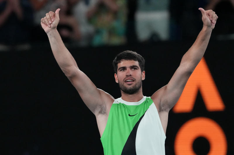 알카라스는 지난 27일(한국시간) 호주 멜버른에서 열린 대회 10일째 남자 단식 준준결승에서 홈 코트의 앨릭스 디미노어(6위·호주)를 3-0(7-5, 6-2, 6-1)으로 제압하고 준결승에 진출했다.
