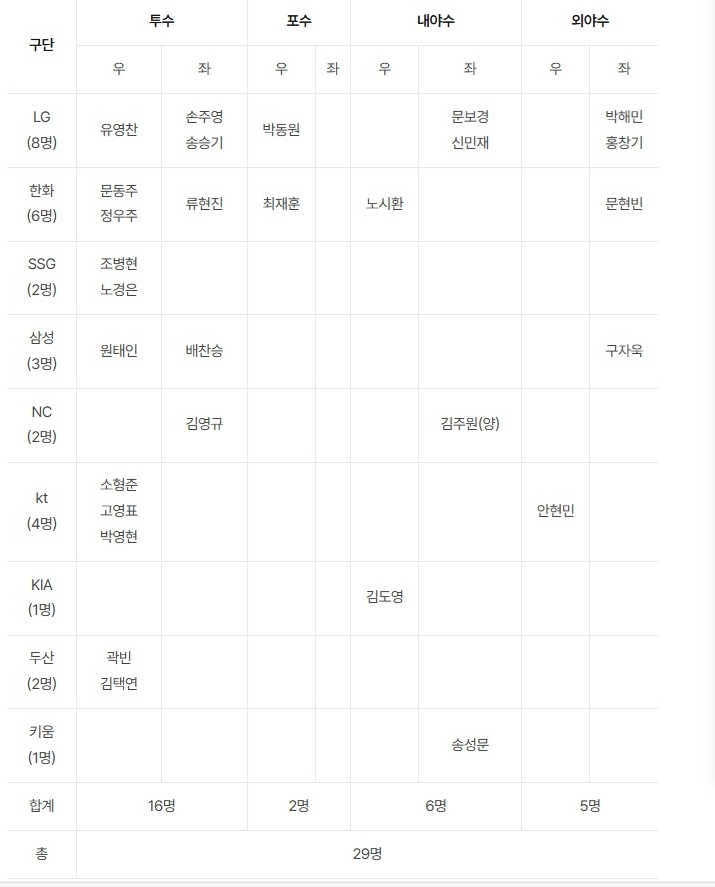 '류지현호'도 손주영의 투구에 미소를 짓는다. 대표팀이 해외에 미니 캠프를 차린 건 대회마다 투수들의 컨디션이 예상보다 떨어졌기 때문이다. 그래서 따뜻한 곳에서 미리 몸을 만들도록 사이판 캠프를 마련했다. 이번 캠프에 참가한 왼손 선발 자원은 류현진(한화 이글스) 손주영·송승기(이상 LG) 셋뿐이다. 손주영은 2024년 국내 투수 중 평균자책점 2위(3.79)였고, 지난해에도 11승 6패 평균자책점 3.41로 호투했다. 포스트시즌(PS) 큰 경기 경험도 쌓았다. 염경엽 LG 감독은 "손주영이 언젠간 우리 팀 개막전 선발 투수를 맡아야 한다"고 기대감을 드러냈다. 이번 대표팀에서도 선발진의 한 축을 맡아주길 기대한다.