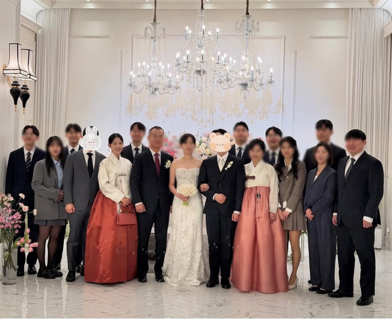 남보라는 지난 27일 자신의 SNS에 “동생의 결혼식, 행복해야혀”라는 애정 어린 멘트와 함께 결혼식 사진을 게재했다. 사진에는 웨딩드레스를 입은 신부를 중심으로 부모님과 남보라를 포함한 13남매 형제자매들이 총출동해 장관을 이뤘다. 사진=남보라 SNS. 특히 다자녀를 훌륭히 키워낸 부모님은 자녀들에 둘러싸인 채 환한 미소를 짓고 있어 눈길을 끈다. 남보라는 일반인 신랑과 제부의 얼굴은 센스 있게 가려 가족들의 프라이버시도 세심하게 배려했다.