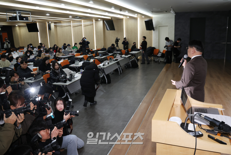 [포토] 많은 취재진 몰린 '뉴진스 탬퍼링' 의혹 관련 기자회견
