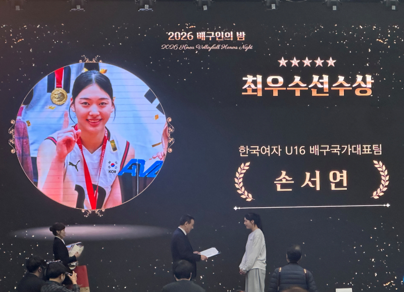한국 여자배구의 미래 손서연(16·선명여고 입학 예정)이 2026 배구인의 밤에서 최우수선수상을 받았다.