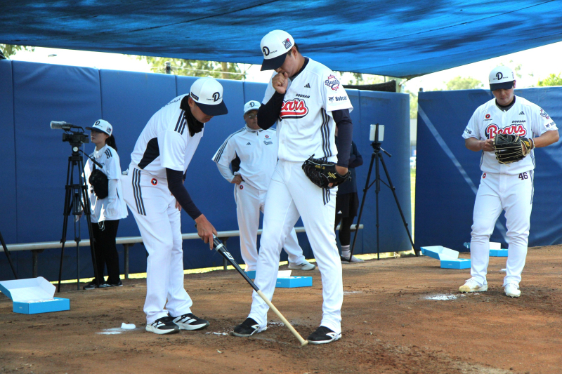 28일 호주 시드니 블랙타운 야구장. 김원형(54) 두산 베어스 감독은 불펜에서 투수들의 피칭을 유심히 지켜봤다. 아시아 쿼터인 타무라 이치로(32·일본)의 첫 투구를 조심스럽게 관찰했다. 이어 마무리 투수 김택연(21)에게는 투구 폼과 궤적에 대해 상세하게 설명했다. 오후에는 배팅 케이지 뒤로 가서 타자들의 타격을 점검했다.