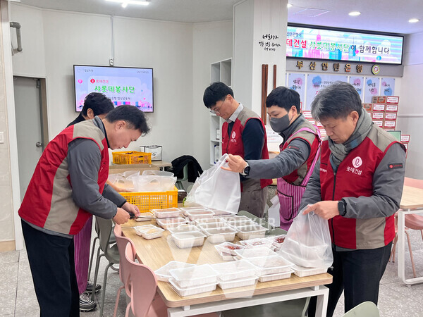 우선 롯데건설 영남지사·부산 지역 직원으로 구성된 샤롯데 봉사단은 식사 200인분을 홀몸이거나 거동이 불편한 어르신들에게 전달했다.