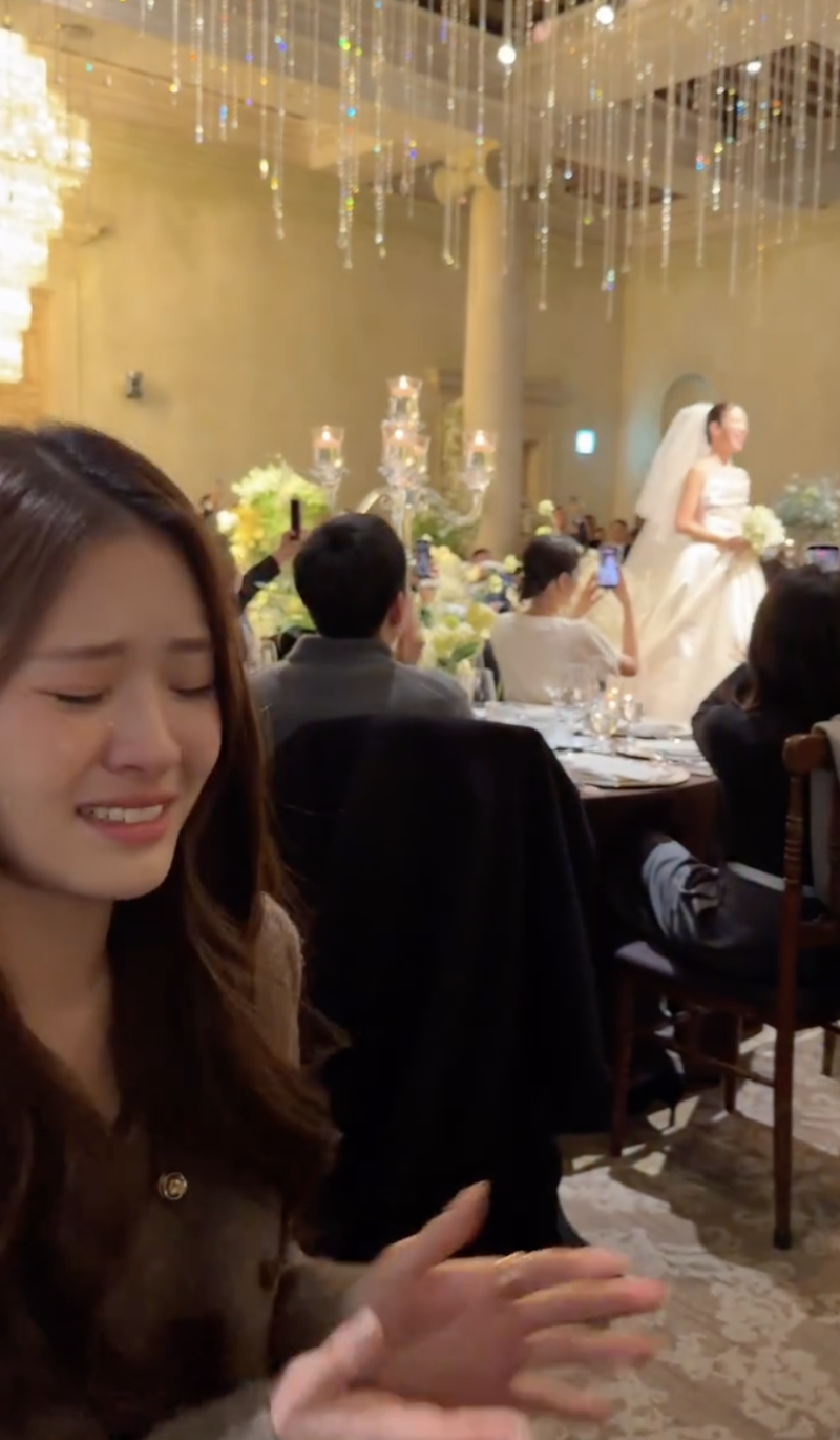 공개된 영상에는 김지민이 신부 김지영이 버진로드를 걷는 모습을 지켜보며 눈물을 쏟는 모습이 담겼다.