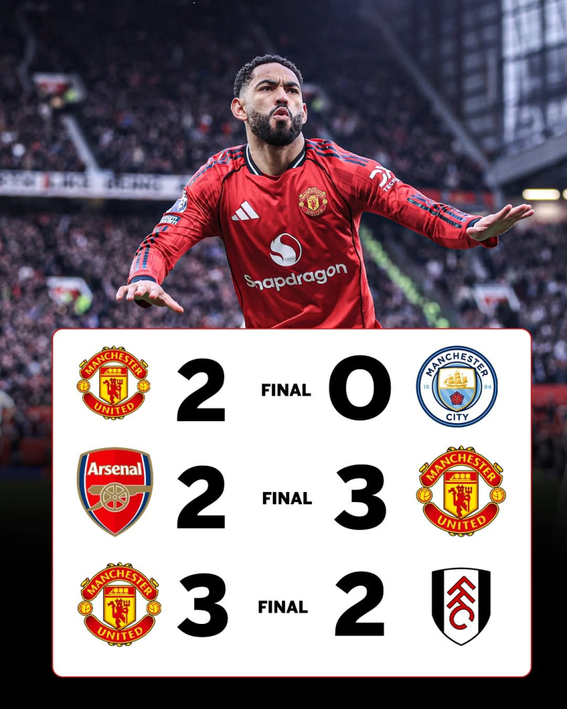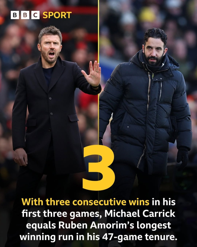잉글랜드 프리미어리그(EPL) 맨체스터 유나이티드가 감독 교체 뒤 3경기 전승 행진을 이어갔다. 후벵 아모링 전 감독 체제서 기록한 리그 최다 연승 타이 기록이다.