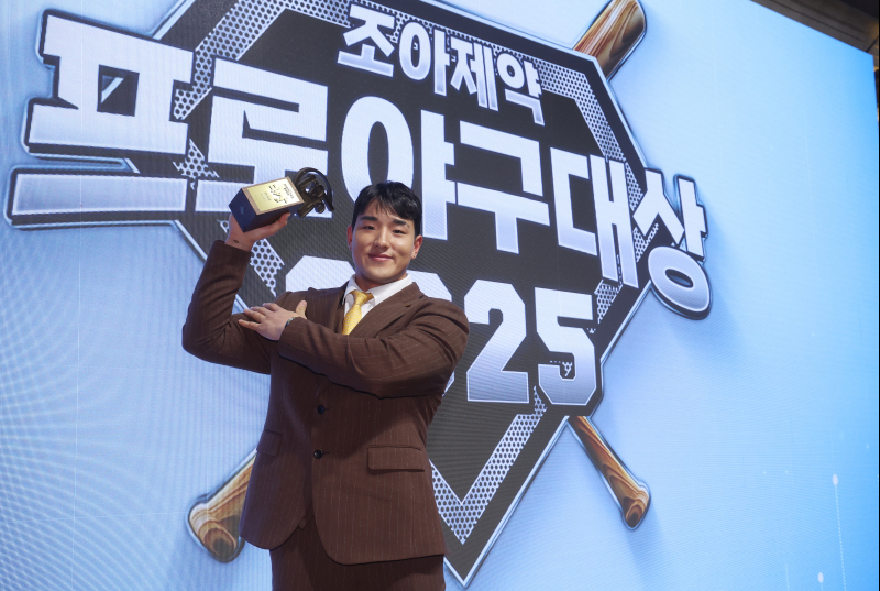 지난해 12월 조아제약과 일간스포츠가 공동 제정한 '2025 조아제약 프로야구 대상'에서 코디 폰세(한화)와 함께 공동으로 대상을 수상한 안현민. IS 포토 올겨울 여러 시상식에서 인터뷰를 많이 했던 그에게 다른 질문을 하고 싶었다. 다음은 안현민과의 짧은 밸런스 게임(선택지 중 하나를 고르는 놀이).