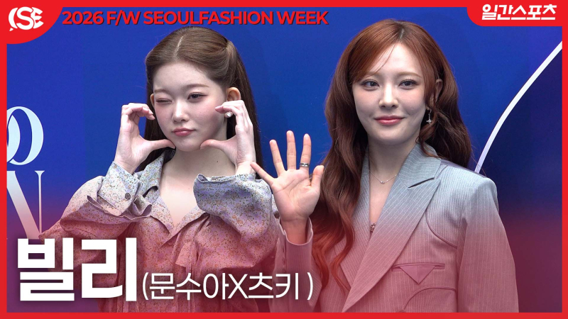 그룹 빌리 문수아, 츠키가 4일 오전 서울 중구 동대문 디자인 플라자(DDP)에서 열린 2026 F/W 서울패션위크 ‘곽현주컬렉션’ 포토월에 참석했다.