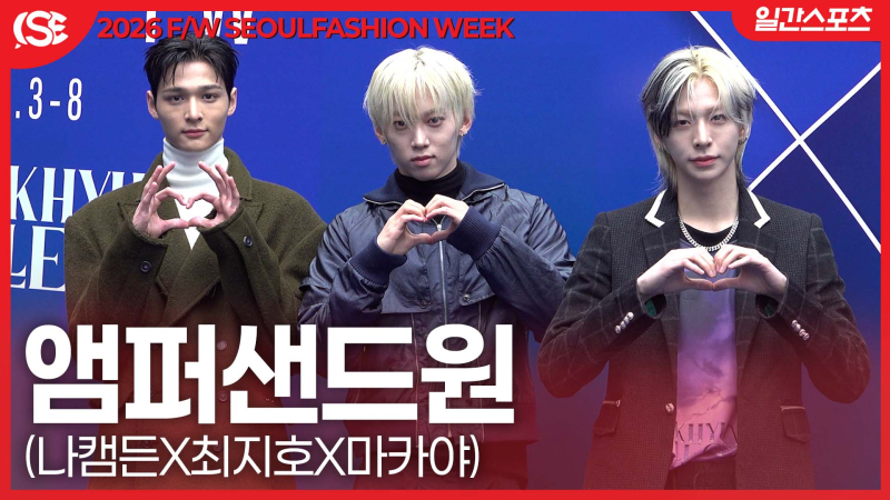 그룹 앰퍼샌드원 나캠든,최지호,마카야가 4일 오전 서울 중구 동대문 디자인 플라자(DDP)에서 열린 2026 F/W 서울패션위크 ‘곽현주컬렉션’ 포토월에 참석했다.