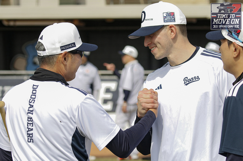 시드니 블랙타운 야구장에서 훈련하는 플렉센. 두산 제공5년 만에 다시 만난 김원형 감독과 플렉센은 손을 맞잡으며 서로를 반겼다. 두산 제공 플렉센은 “5년 전 만났던 선수들 모두가 날 반겨줬다. 특히 2020년 투수 코치였던 김원형 감독님, 불펜 코치였던 정재훈 투수 코치님과는 워낙 잘 통하는 사이”라며 “김원형 감독님이 (SSG 랜더스 감독을 거쳐) 두산에 다시 오셨다고 해서 기뻤다”며 웃었다.