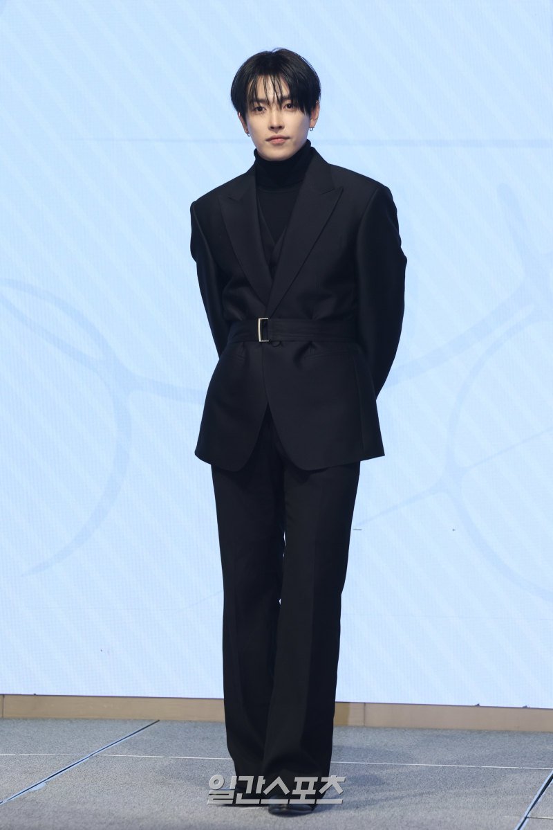 그룹 에이티즈(ATEEZ) 홍중이 5일 오후 서울 영등포구 페어몬트 앰배서더에서 열린 미니 13집 ‘골든 아워 : 파트 4(GOLDEN HOUR : Part.4)’ 발매 기념 기자간담회에서 포즈를 취하고 있다.